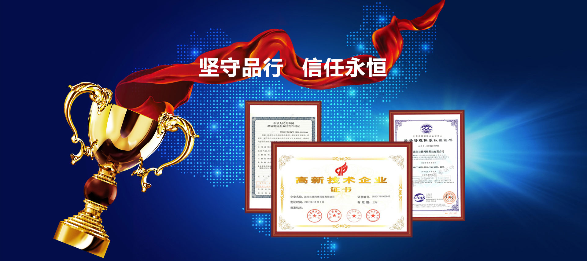 沈陽云騰網絡科技股份有限公司致力于圍繞企業數字化進程提供一站式網絡IT支撐服務。公司自成立起獲批了國家工信等部門的ISP互聯網接入許可、國內呼叫中心許可、質管體系ISO9000認證,以超高的信譽評級開通了銀行托收服務,快速成長為科技型中小企業、高新技術企業。是國內首家專注為企業組織提供“數字組網+聯網上網+IT安全運維的一站式網絡服務模式的開創者——聚焦組織的業務場景、應用場景等提供標準化與定制化服務;讓企業在不同時期快速通過利用數字化解決方案帶來的紅利推動企業模式的創新、專注自身業務領域提高核心競爭力。
